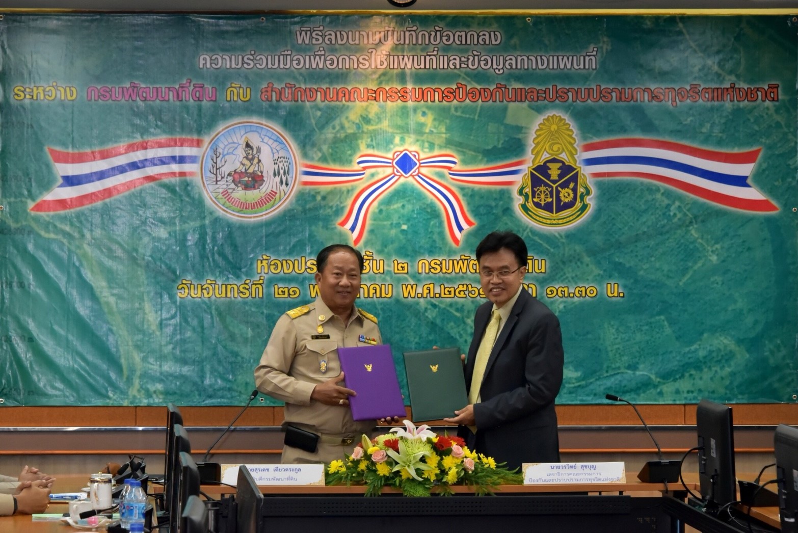 กรมพัฒนาที่ดิน กับ สำนักงานคณะกรรมการป้องกันและปราบปรามการทุจริตแห่งชาติ ร่วมลงนามบันทึกข้อตกลงความร่วมมือ การใช้แผนที่และ/หรือข้อมูลทางเเผนที่