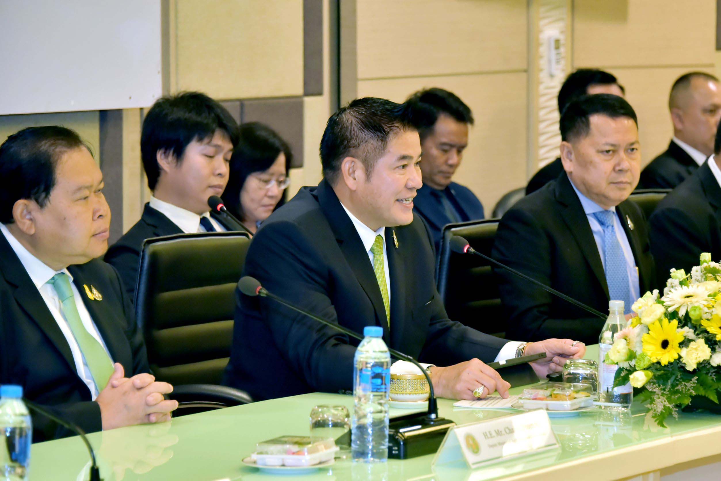 วันพุธที่ 11 ตุลาคม พ.ศ. 2566 เวลา 10.00 น. ร้อยเอก ธรรมนัส พรหมเผ่า รัฐมนตรีว่าการกระทรวงเกษตรและสหกรณ์ พร้อมด้วยคณะผู้บริหารกระทรวงเกษตรและสหกรณ์ ประกอบด้วย นายไชยา พรหมา รัฐมนตรีช่วยว่าการกระทรวงเกษตรและสหกรณ์ นายประยูร อินสกุล ปลัดกระทรวงเกษตรและสหกรณ์ นายเศรษฐเกียรติ กระจ่างวงษ์ รองปลัดกระทรวงเกษตรและสหกรณ์ นายปราโมทย์ ยาใจ อธิบดีกรมพัฒนาที่ดิน ดร.อาทิตย์ ศุขเกษม รองอธิบดีกรมพัฒนาที่ดิน และหัวหน้าส่วนราชการในสังกัด ร่วมประชุมหารือกับ นายเติ้ง เซี่ยวกัง (H.E. Mr. Deng Xiaogang) รัฐมนตรีช่วยว่าการกระทรวงเกษตรและกิจการชนบทสาธารณรัฐประชาชนจีน (Ministry of Agriculture and Rural Affairs : MARA) และคณะ ในโอกาสที่เดินทางมาเยือนประเทศไทย ณ ห้องประชุม123 กระทรวงเกษตรและสหกรณ์ โดยมีวัตถุประสงค์เพื่อกระชับความสัมพันธ์ระหว่างผู้บริหารระดับสูงด้านการเกษตรของไทยและจีน พร้อมแลกเปลี่ยนวิสัยทัศน์เกี่ยวกับการยกระดับความร่วมมือด้านการเกษตรเชิงนโยบาย รวมทั้งการผลักดันการค้าการลงทุนสินค้าเกษตรและอาหารไทย-จีน ให้เกิดความเข้มแข็งและยั่งยืน