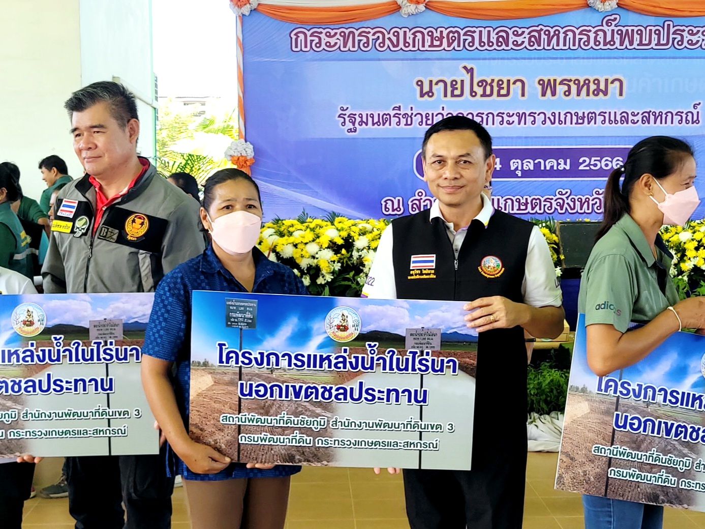 นางสาวเสาวนีย์ ประจันศรี ผู้เชี่ยวชาญด้านวางระบบการพัฒนาที่ดิน นายไลซันต์ ตั้งภูมิ ผู้อำนวยการสถานีพัฒนาที่ดินชัยภูมิพร้อมด้วยข้าราชการและเจ้าหน้าที่สำนักงานพัฒนาที่ดินเขต 3 ร่วมงานกระทรวงเกษตรและสหกรณ์พบประชาชน โดยมีนายไชยา พรหมา รัฐมนตรีช่วยว่าการกระทรวงเกษตรและสหกรณ์ เป็นประธานเปิดงาน และมอบนโยบายการปฏิบัติงานให้กับหน่วยงานในสังกัดกระทรวงเกษตรและสหกรณ์ ให้สามารถปฏิบัติงานได้อย่างมีประสิทธิภาพและบรรลุวัตถุประสงค์ ในการนี้ กรมพัฒนาที่ดิน ได้ร่วมจัดบูธนิทรรศการให้ความรู้ด้านการพัฒนาที่ดิน พร้อมทั้งมอบปัจจัยการผลิตให้แก่เกษตรกรที่เข้าร่วมงาน ณ สำนักงานเกษตรจังหวัดชัยภูมิ และอำเภอหนองบัวแดง จังหวัดชัยภูมิ