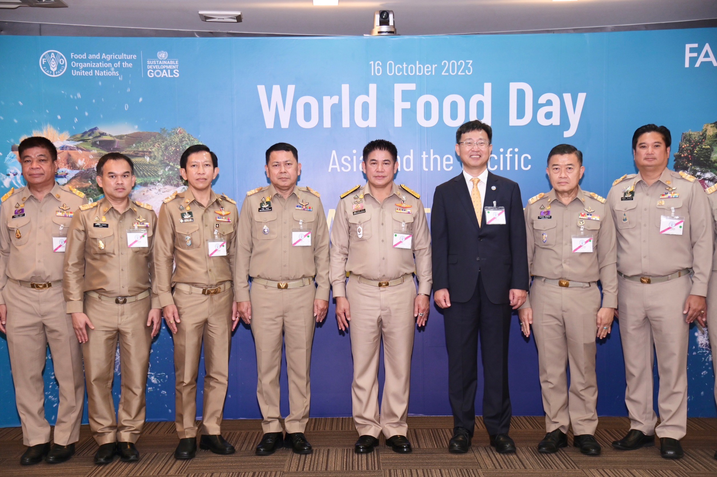วันจันทร์ที่ 16 ตุลาคม พ.ศ. 2566 เวลา 09.30 น. สมเด็จพระกนิษฐาธิราชเจ้า กรมสมเด็จพระเทพรัตนราชสุดาฯ สยามบรมราชกุมารี เสด็จพระราชดำเนินไปยังห้องประชุมใหญ่ สำนักงานองค์การอาหารและเกษตรแห่งสหประชาชาติ (เอฟ เอ โอ) ประจำภูมิภาคเอเชียและแปซิฟิก ถนนพระอาทิตย์ กรุงเทพฯ ทรงเป็นองค์ประธานเปิดงานวันอาหารโลก 2566 ภายใต้หัวข้อ WATER IS LIFE WATER IS FOOD LEAVE NO ONE BEHIND โดยมี ร้อยเอก ธรรมนัส พรหมเผ่า รัฐมนตรีว่าการกระทรวงเกษตรและสหกรณ์ นายประยูร อินสกุล ปลัดกระทรวงเกษตรและสหกรณ์ นายปราโมทย์ ยาใจ อธิบดีกรมพัฒนาที่ดิน และผู้บริหารหน่วยงานในสังกัดกระทรวงเกษตรและสหกรณ์ เฝ้ารับเสด็จฯ ร่วมกับหน่วยงานที่เกี่ยวข้อง ซึ่งวันอาหารโลกตรงกับวันที่ 16 ตุลาคมของทุกปี จัดขึ้นเพื่อระลึกถึงการก่อตั้งขององค์การอาหารและการเกษตรแห่งสหประชาชาติ (Food and Agriculture Organization of the United Nations หรือ FAO) เพื่อสร้างความตระหนักถึงความสำคัญของอาหารให้แก่ประชาชน รวมถึงสร้างความรู้ความเข้าใจถึงปัญหาในการจัดการและการกระจายอาหาร โดยในปี 2023 นี้ เป็นปีที่นานาประเทศเน้นการจัดการทรัพยากรน้ำ เน้นการดูแลระบบทรัพยากรน้ำในห่วงโซ่อาหารให้ยั่งยืน เพื่อรักษาแหล่งน้ำจืดให้ยาวนานถึงอนาคต