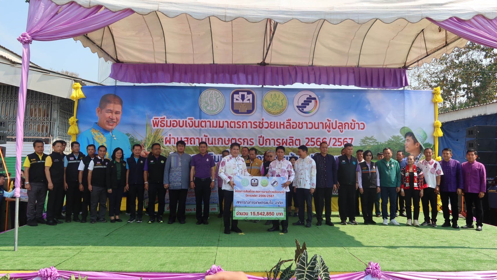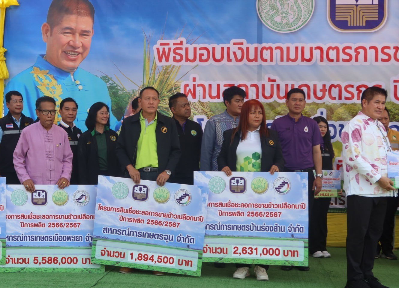 รองอธิบดีกรมพัฒนาที่ดิน อาทิตย์ ร่วมคณะ รัฐมนตรีว่าการกระทรวงเกษตรและสหกรณ์ ธรรมนัส มอบเงินตามมาตรการช่วยเหลือชาวนาผู้ปลูกข้าว 2566/67 พร้อมสนับสนุนผลิตภัณฑ์เทคโนโลยี พด. พัฒนาที่ดิน สร้างความเข้มแข็งภาคการเกษตร