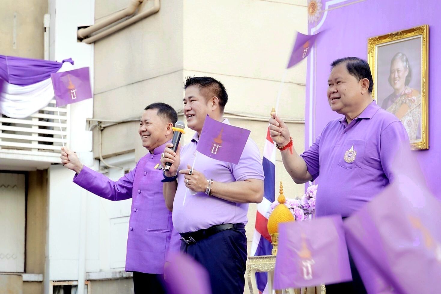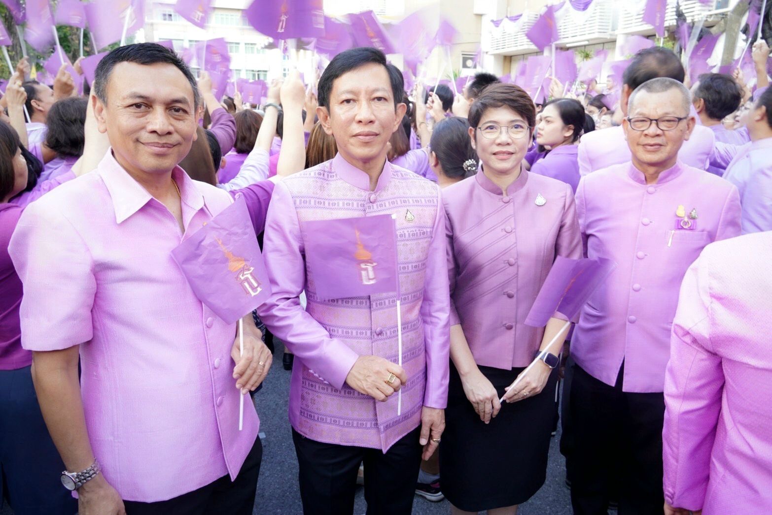 อธิบดีกรมพัฒนาที่ดิน ปราโมทย์ นำคณะข้าราชการกรมพัฒนาที่ดิน ร่วมสวมเสื้อม่วงถวายพระพร สมเด็จพระกนิษฐาธิราชเจ้า กรมสมเด็จพระเทพรัตนราชสุดาฯ สยามบรมราชกุมารี