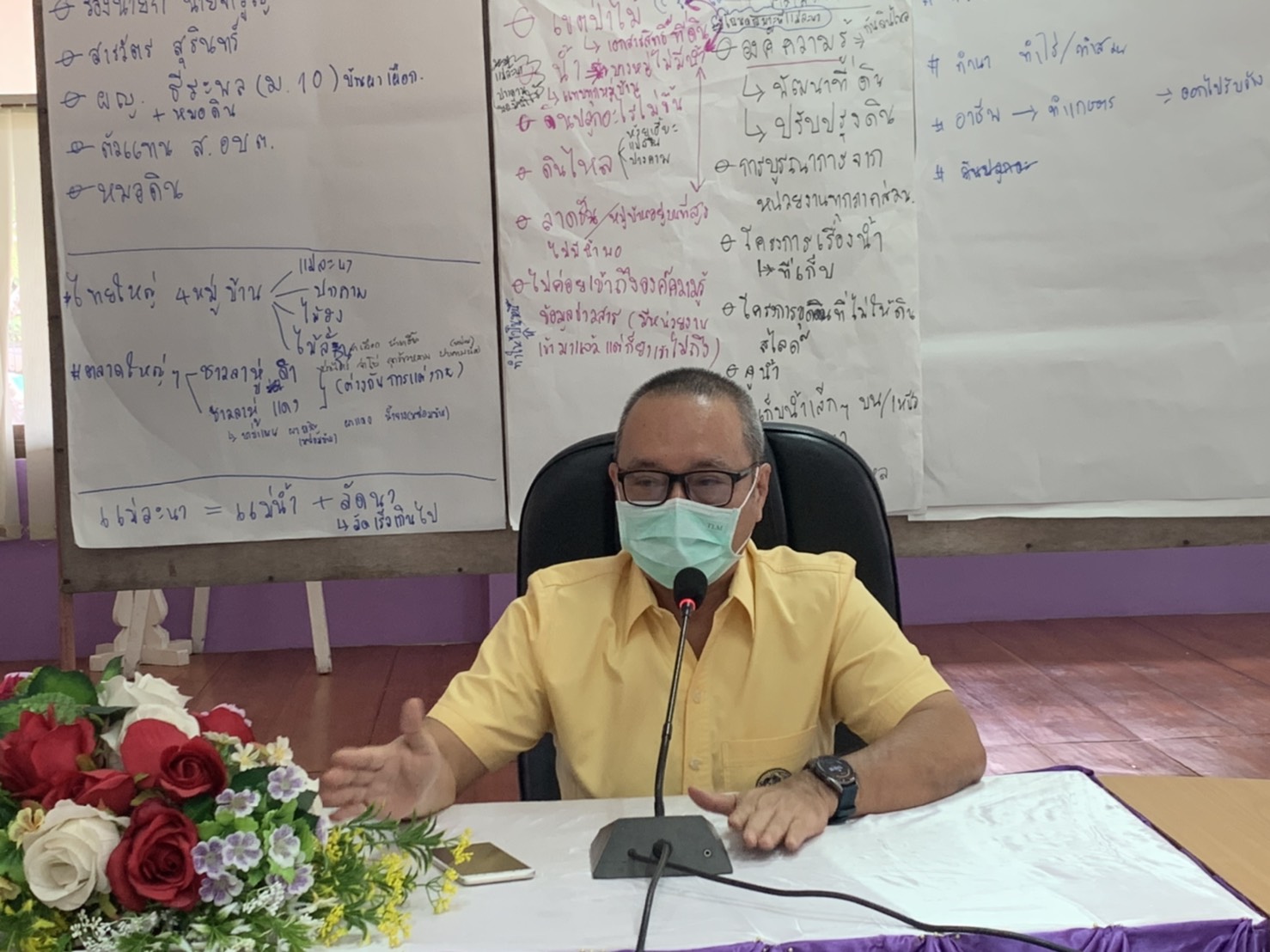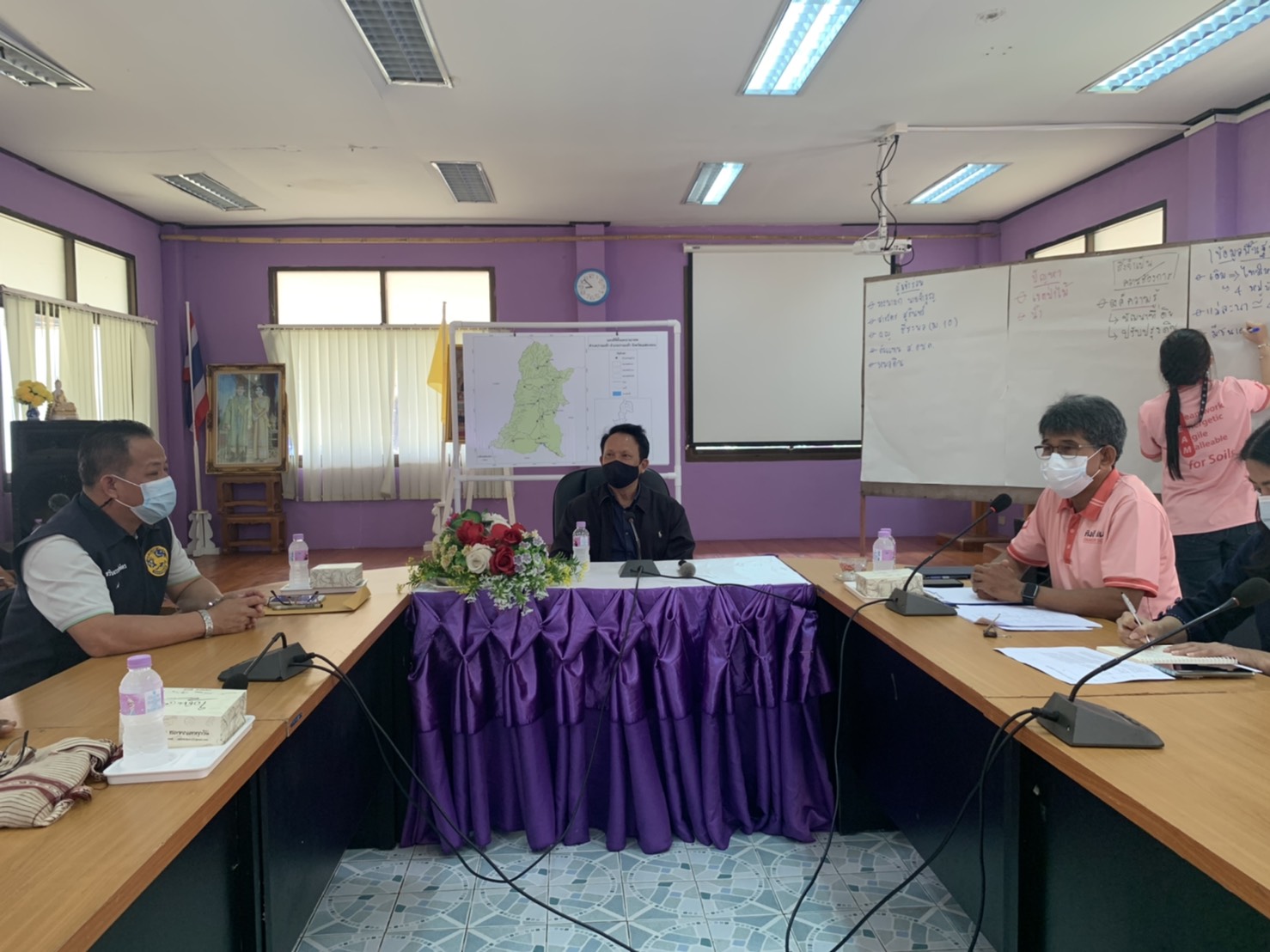 นายถาวร มีชัย ผู้อำนวยการสำนักงานพัฒนาที่ดินเขต 6 ตรวจติดตามการดำเนินงานของสถานีพัฒนาที่ดินแม่ฮ่องสอน เพื่อให้การดำเนินงาน มีประสิทธิภาพ ตรงความต้องการของกลุ่มเป้าหมาย และร่วมพบปะพี่น้องเกษตรกรในการทำวิเคราะห์ชุมชนแบบมีส่วนร่วม (Participatory Rural Appraisal: PRA) พร้อมด้วย นายกานต์ ไตรโสภณ ผู้เชี่ยวชาญด้านการพัฒนาที่ดินบนพื้นที่สูง นางสาวชนิษฎา พันธุ์เมือง รักษาการผู้เชี่ยวชาญด้านวางระบบด้านการพัฒนาที่ดิน นายวิโรจน์ บรรเจิดฤทธิ์ ผู้อำนวยการสถานีพัฒนาที่ดินแม่ฮ่องสอน และเจ้าหน้าที่สำนักงานพัฒนาที่ดินเขต 6 เมื่อวันอังคารที่ 22 มิถุนายน พ.ศ. 2564 ณ องค์การบริหารส่วนตำบลปางมะผ้า ต.ปางมะผ้า อ.ปางมะผ้า จ.แม่ฮ่องสอน โดยมีผู้นำชุมชน และหมอดินอาสาเข้าร่วม จำนวน 13 ราย