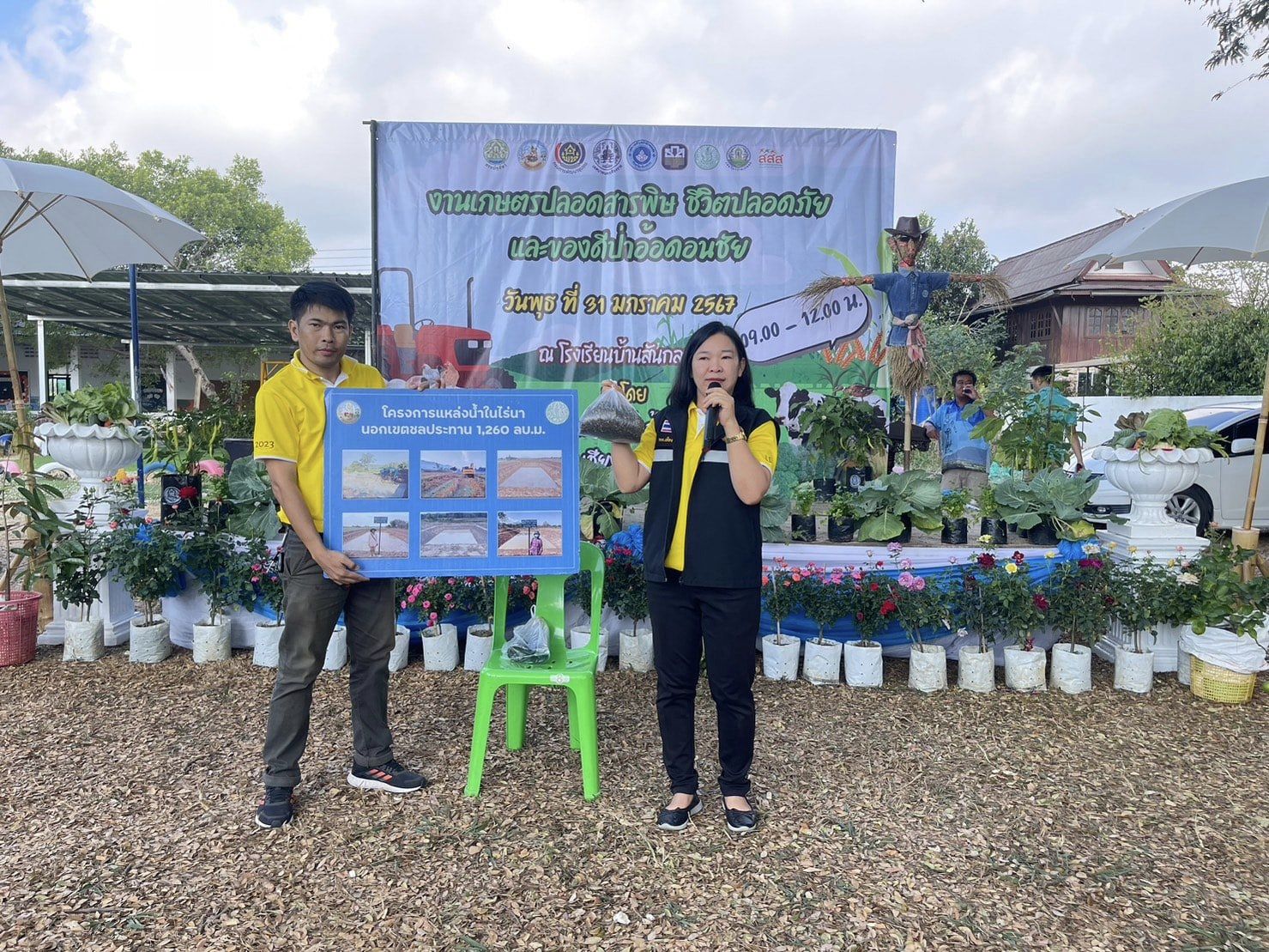 วันพุธที่ 31 มกราคม พ.ศ. 2567 เวลา 09.00 น. นายปริญญานนท์ ทองคำ ผู้อำนวยการสถานีพัฒนาที่ดินเชียงราย มอบหมายให้ นางสาวบุษบา อนุจรพันธ์ นักวิชาการเกษตรชำนาญการ พร้อมด้วยเจ้าหน้าที่ หน่วยวิชาการพัฒนาที่ดินที่ 6 ร่วมกิจกรรมงานเกษตรปลอดสารพิษ ชีวิตปลอดภัย และของดีป่าอ้อดอนชัย ณ โรงเรียนบ้านสันกลาง หมู่ 13 ตำบลป่าอ้อดอนชัย อำเภอเมืองเชียงราย จังหวัดเชียงราย เพื่อยกระดับคุณภาพชีวิตของประชาชน เพื่อให้เกิดการใช้ทรัพยากรอย่างคุ้มค่า สร้างรายได้ สร้างความมั่นคงของชุมชน และสร้างกลไกลให้เกิดกระบวนการขับเคลื่อนระบบเกษตรกรรมเพื่ออาหารปลอดภัย (ต้นน้ำ กลางน้ำ ปลายน้ำ) ตั้งแต่ขบวนการผลิตโดยเกษตรกรไปจนถึงการจำหน่าย (การตลาด) สู่ผู้บริโภค โดยมีนายสุรฬ์พลฎ์ ดุรงคชยานุรักษ์ นายกเทศมนตรีตำบลป่าอ้อดอนชัย เป็นประธานกล่าวเปิดงาน ในส่วนของสถานีพัฒนาที่ดินเชียงราย ได้จัดกิจกรรมฐานเรียนรู้การถ่ายทอดองค์ความรู้ด้านการพัฒนาที่ดิน และมอบปัจจัยการผลิตสารเร่งซุปเปอร์ พด. น้ำหมักชีวภาพ ให้แก่เกษตรกรและเจ้าหน้าที่ที่เข้าร่วมกิจกรรม จำนวน 150 ราย เพื่อนำไปใช้ประโยชน์ในพื้นที่แปลงเกษตรกรต่อไป