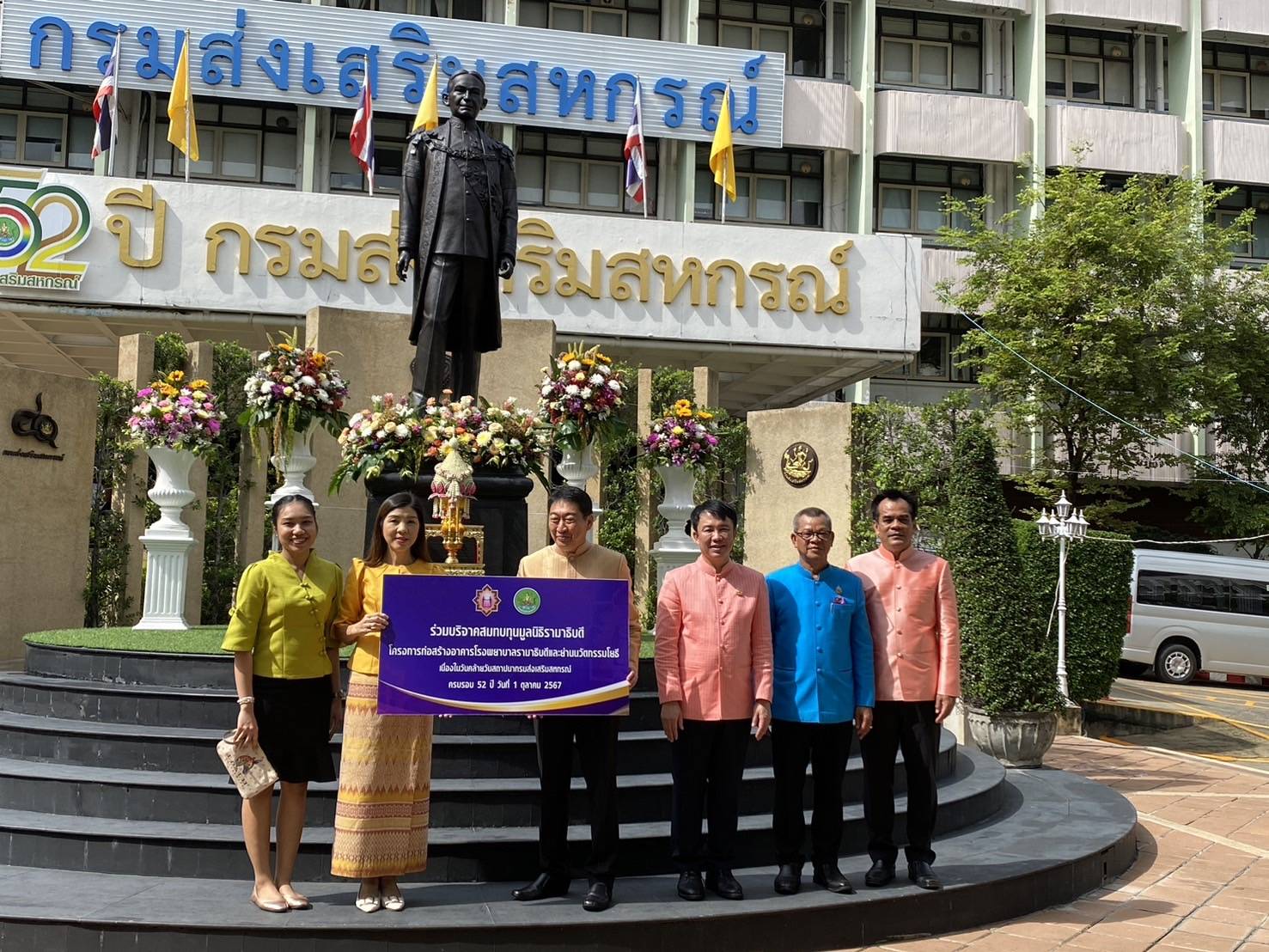 นางสาวมิรันตี ฐิติโชติรัตนา ผู้อำนวยการกลุ่มงานพิพิธภัณฑ์ดิน เป็นผู้แทนกรมพัฒนาที่ดิน พร้อมด้วยข้าราชการ และเจ้าหน้าที่สังกัดสำนักงานเลขานุการกรม ร่วมแสดงความยินดีในงานวันคล้ายวันสถาปนากรมส่งเสริมสหกรณ์ ครบรอบ 52 ปี ในการนี้ กรมพัฒนาที่ดิน ได้ร่วมบริจาคเงินเพื่อสมทบทุนมูลนิธิรามาธิบดี โครงการก่อสร้างอาคารโรงพยาบาลรามาธิบดีและย่านนวัตกรรมโยธี โดยมี นายวิศิษฐ์ ศรีสุวรรณ์ อธิบดีกรมส่งเสริมสหกรณ์ เป็นผู้รับมอบ ณ บริเวณลานหน้าอนุสาวรีย์พระราชวรวงศ์เธอ กรมหมื่นพิทยาลงกรณ์ พระบิดาแห่งการสหกรณ์ไทย กรมส่งเสริมสหกรณ์ เทเวศร์ กรุงเทพฯ